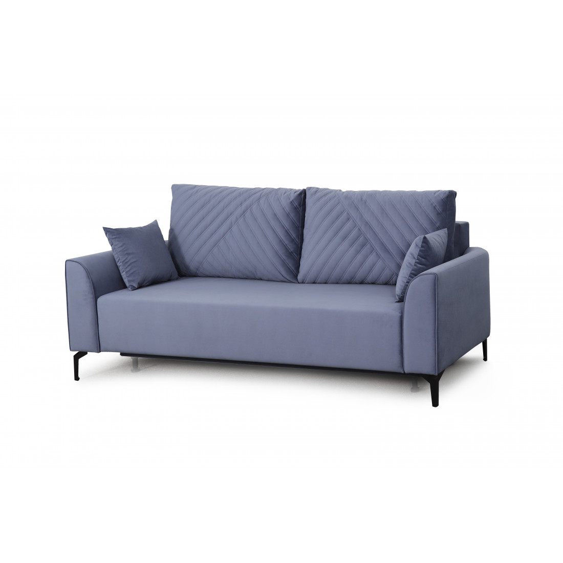 Плавные линии подлокотников позволяют удобно расположиться во время отдыха. Диван стоит на высоких металлических опорах, что позволяет использовать робот-пылесос в процессе уборки. Удобный и долговечный механизм трансформации "Тик-так" обеспечивает легкое раскладывание дивана.