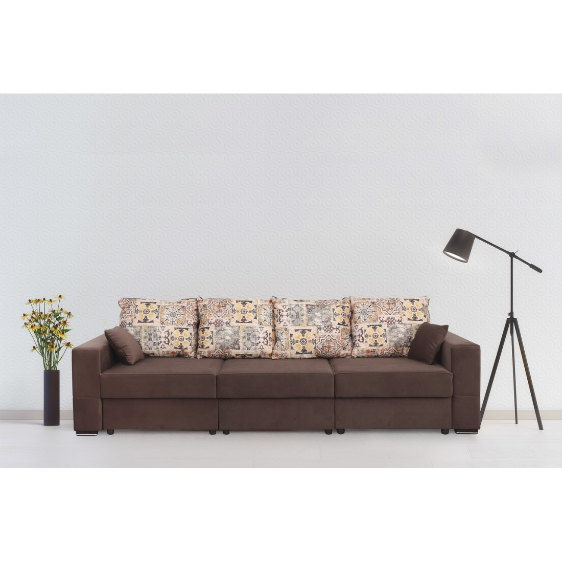 Прямой диван «Бостон-2400» может трансформироваться в угловой левый диван, угловой правый и П-образный диван. Это дает возможность его разнообразного использования.