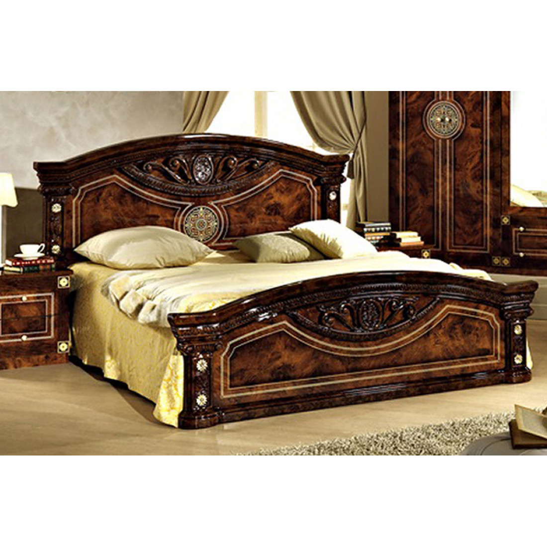 Двуспальная кровать Рома (орех) от Российской фабрики «ДИА мебель» выполнена в строгом, классическом стиле. Ореховый цвет в сочетании с глянцевым покрытием придает элегантность. Такая большая, просторная кровать поможет вам забыть о проблемах и окунуться в сладкий сон. Она поможет почувствовать себя свободным и непринужденным, будет не обходимым модулем в вашей спальне. Вся коллекция "Рома" предназначена только для истинных ценителей элегантного классического стиля.