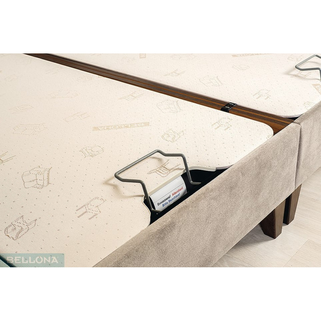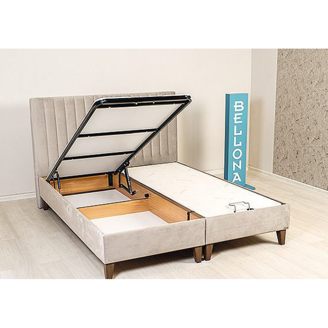 Элегантная база и спинка с декоративной отстрочкой с обивкой из мебельной ткани. Данная модель идет в комплекте с вкладным, жестким кроватным основанием, оснащенным двухсторонним газоподъемным механизмом с двухсторонним фиксатором. Подъемный механизм, которым оснащено основание кровати, добавляет комфорта в использовании модели, облегчая доступ к вместительному ящику для белья.