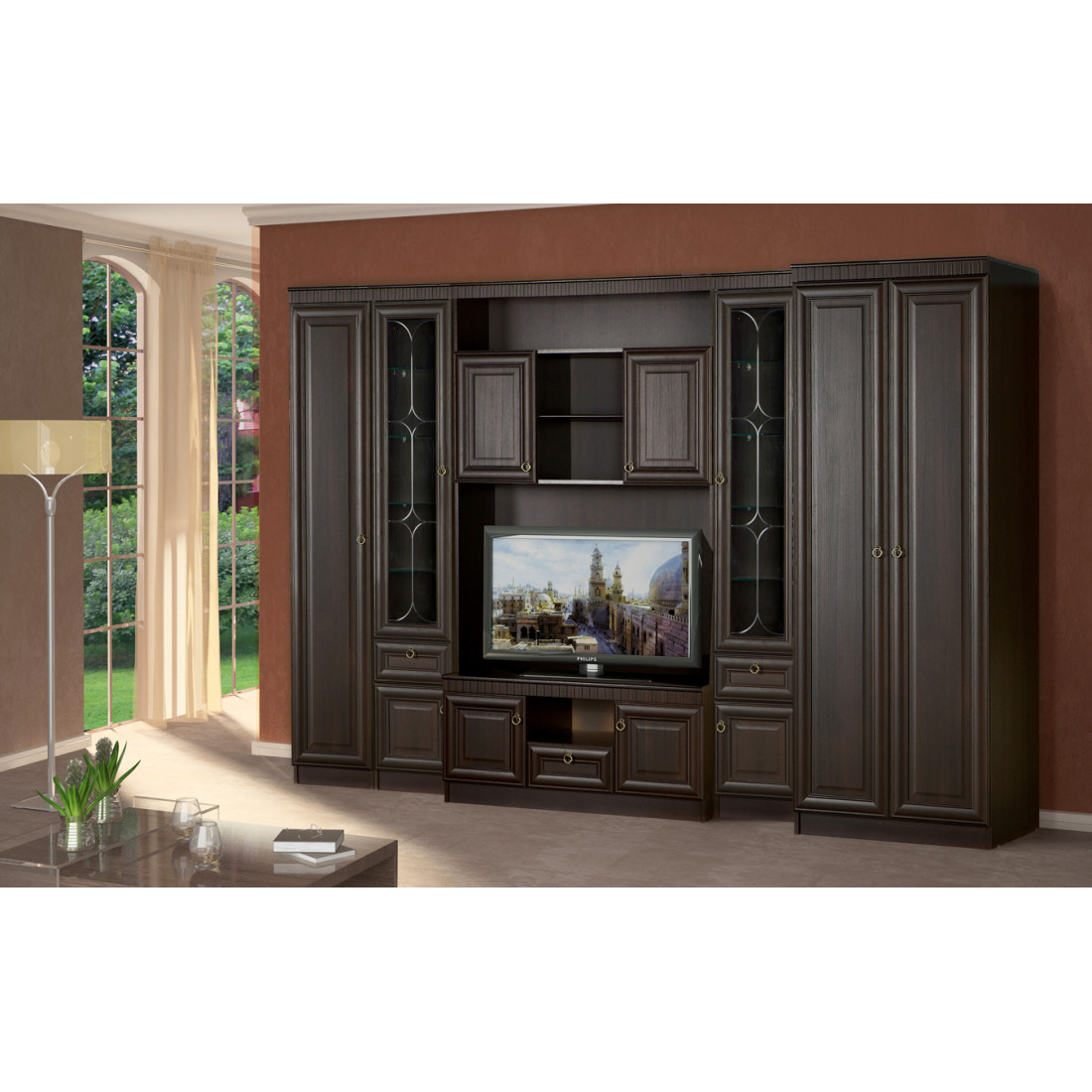 Фасады: МДФ, декор – денвер темный, стекло с гравировкой