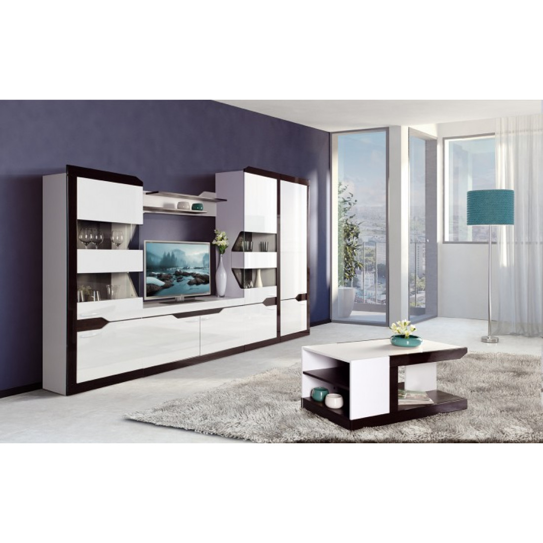 Фасады: МДФ, декоры – белый глянец, венге глянец, стекло