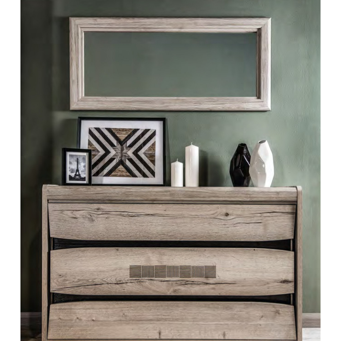 Комод Мале - обладатель лаконичного и свежего дизайна. Он является представителем коллекции «Мале». В этой коллекции особое внимание уделено внешнему виду и тактильным ощущениям от прикосновения к мебели, схожей с натуральным деревом по рисунку и шероховатости. Деко