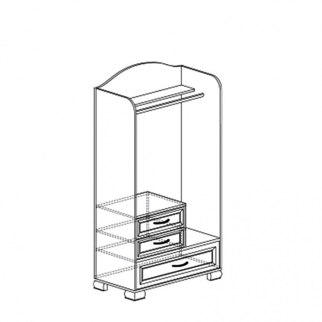 Золотистые ручки с белой патиной подчеркивают классический стиль мебели