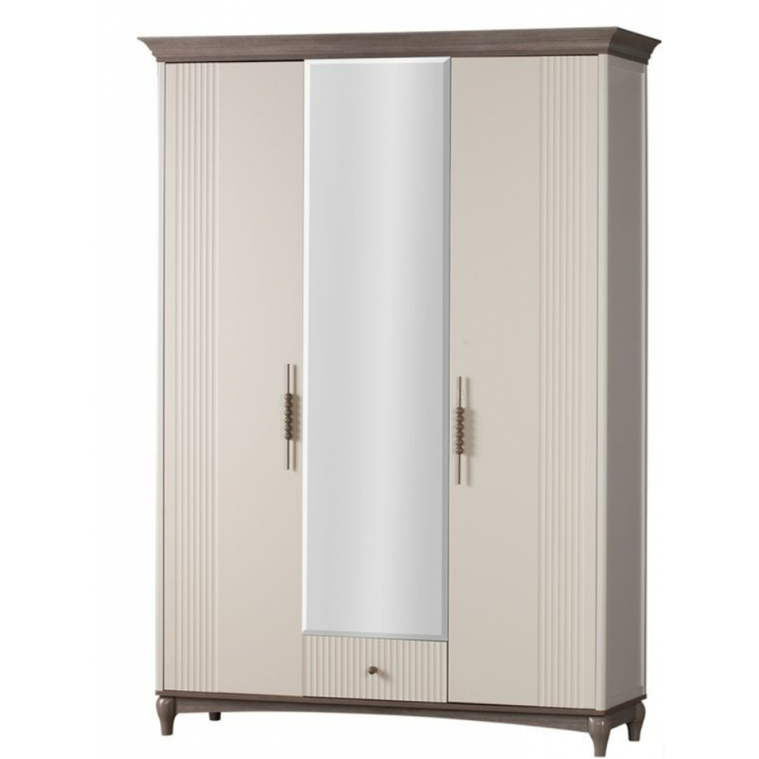 Фасады: МДФ, декор – кашемир серый, зеркало с фацетом